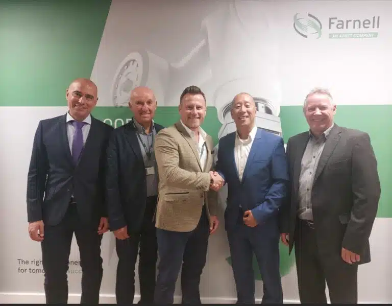 De gauche à droite sur la photo : Albert Andreev, Directeur commercial Europe chez Fulham, Mike Fawkes, Directeur et investisseur chez Fulham, Antony Corrie, PDG de Fulham, Jose Lok, Directeur de la catégorie produits mondiaux – Composants embarqués et SBC chez Farnell, et Steve Hallgate, Responsable international du segment produits Alimentation chez Farnell.