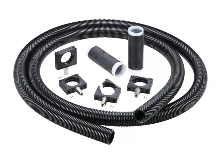 Le système se compose de plusieurs éléments complémentaires, chacun ayant une fonction bien précise. La gaine annelée PMA® VOH, en polyamide 6, est spécialement formulée pour offrir une excellente résistance aux UV et garantir le plus haut niveau de protection mécanique. Le système de support PMA® BGPS/01, également en polyamide 6, est un support monobloc pré-équipé d’un boulon métallique de 4,8 cm de long, facilitant ainsi la pose et le maintien des gaines. Enfin, la gaine rétractable à froid en caoutchouc EPDM permet une connexion rapide et sans outil entre la gaine et le câble, simplifiant grandement l’installation.