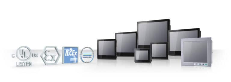 Travailler en extérieur ou dans des environnements dangereux peut poser de nombreux défis, qu’il s’agisse de températures extrêmement chaudes ou glaciales, d’une exposition élevée à la poussière et à l’eau ou d’atmosphères potentiellement explosives. Moxa propose des panel PC et des écrans robustes certifiés pour une utilisation dans les environnements d’exploitation extrêmes : applications pétrolières et gazières, marines et ferroviaires notamment. Les certifications approuvées incluent UL/cUL Classe I Division 2, ATEX Zone 2, IECEx Zone 2 pour les environnements explosifs, DNV GL, ABS et CCS pour les opérations maritimes ; et la conformité à la norme EN 50155:2017 pour les systèmes de contrôle embarqués des trains.