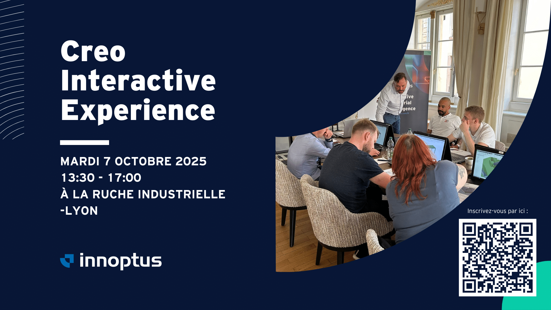 Nous vous invitons à notre formation gratuite ‘Creo Interactive Experience’ dédiée à l’outil de conception Creo, qui se tiendra le 7 octobre 2025 à Lyon de 13:30 à 17H