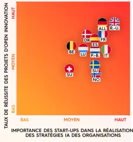 - La France affiche l’ambition la plus forte en Europe en termes d’open innovation, mais peine le plus à trouver des start-ups avec qui collaborer