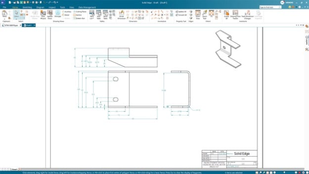 Les dessins générés automatiquement par l’IA dans Designcenter Solid Edge 2026 produisent une documentation 2D qui est complète à 80 % dès sa création, avec un placement des vues, une cotation et une sélection de modèle de présentation intelligents