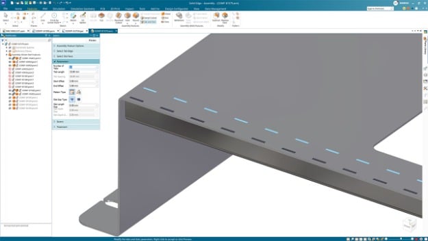 Productivité de l’assemblage et de la tôlerie De nouveaux outils simplifient les assemblages complexes et améliorent la préparation à la fabrication. L’outil Part Display Configurations et la fonctionnalité Visual Explode améliorée facilitent la création de la documentation et la réutilisation. La création intégrée d’onglets et de rainures, le rognage des brides à bords multiples et la prise en charge de l’épaisseur des parois réduisent les retouches et améliorent la fabricabilité.