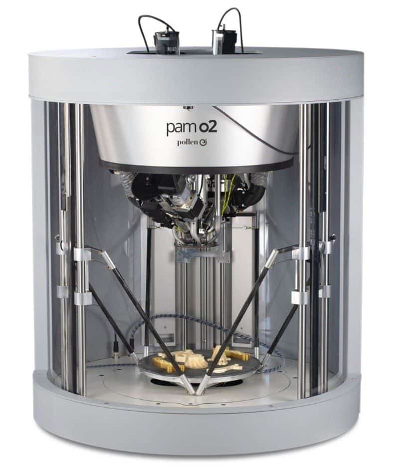 De fait, grâce à une technologie brevetée, les imprimantes de Pollen AM acceptent les thermoplastiques standards de commodité, les thermoplastiques de performance, ceux qui répondent à des normes spécifiques (fumée, alimentarité, usage médical…), mais également, grâce à des procédés indirects, sont capables de mettre en forme des résines chargées jusqu’à 50 % de fibres, des céramiques et des métaux.