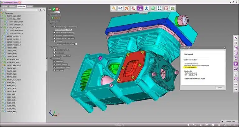 3D_Evolution est un logiciel spécialisé dans les conversions et les simplifications des données CAO 3D, seul outil certifié conforme aux spécifications SASIG/PDQ et VDA 4955/2. Il réalise des conversions de grande qualité sans autre licence (interfaces pour les formats CATIA V5, V6, Creo, NX, SOLIDWORKS, INVENTOR, JT, STEP, PDF-3D, XT, ACIS, DWG, DGN et +). Le module Feature Based génère des modèles fonctionnels et intelligents avec l’historique de construction, paramètres et contraintes. La dernière version du module Simplifier permet une réduction jusqu’à 97% des grands assemblages (RV, RA et usine numérique) pour les données natives CATIA, NX, CREO, SOLIDWORKS et les formats JT, STEP.