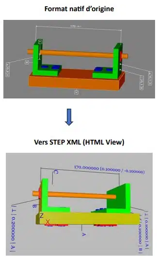 Le pilote présenté par Datakit permet d’exporter des annotations et des données de dimensionnement dans des assemblages de plusieurs niveaux et imbriqués, vers STEP XML. Les vues avec caméras et plans de coupe, les informations de positionnement et la sémantique des PMI sont traitées. Les notions de référence à fichier externe avec UUID entrent également en jeu et ont été un challenge dans ce travail.